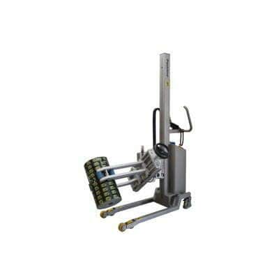 The clamp is fitted with narrow rollers with long reach capability. This enables the machine to lift reels from any area on a pallet, including the rear. It also allows the handling of reels even if they are stored quite close together and deliver them to a wrapping machine (or similar) which may have limited or restricted access.